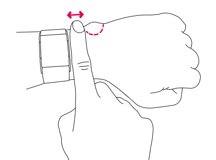 Right position for the PulseOn device is 1-2 finger widths towards elbow from the bone on the side of your wrist (ulna). If your ulna bone is very significant it may be beneficial to wear the device event up to 5-7cm/1,9-2,7 inch away from the bone to ascertain solid skin contact even during hand movements.