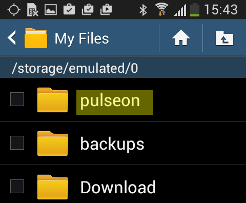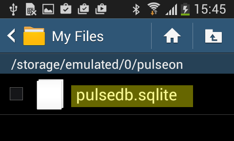 5) To transfer the saved file to a new Android device, do the three first steps. Then choose the saved file on your Computer and drag it on your Android device pulseon folder to replace the pulsedb.sqlite file